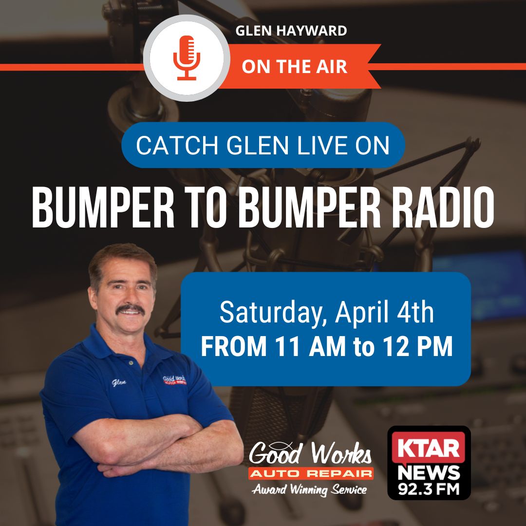 Tune in This Saturday, April 4th to hear Glen as a guest on KTAR 92.3 FM program Bumper to Bumper! Glen will be dispensing invaluable auto repair advice from 11 AM to 12 Noon – you don’t want to miss it!